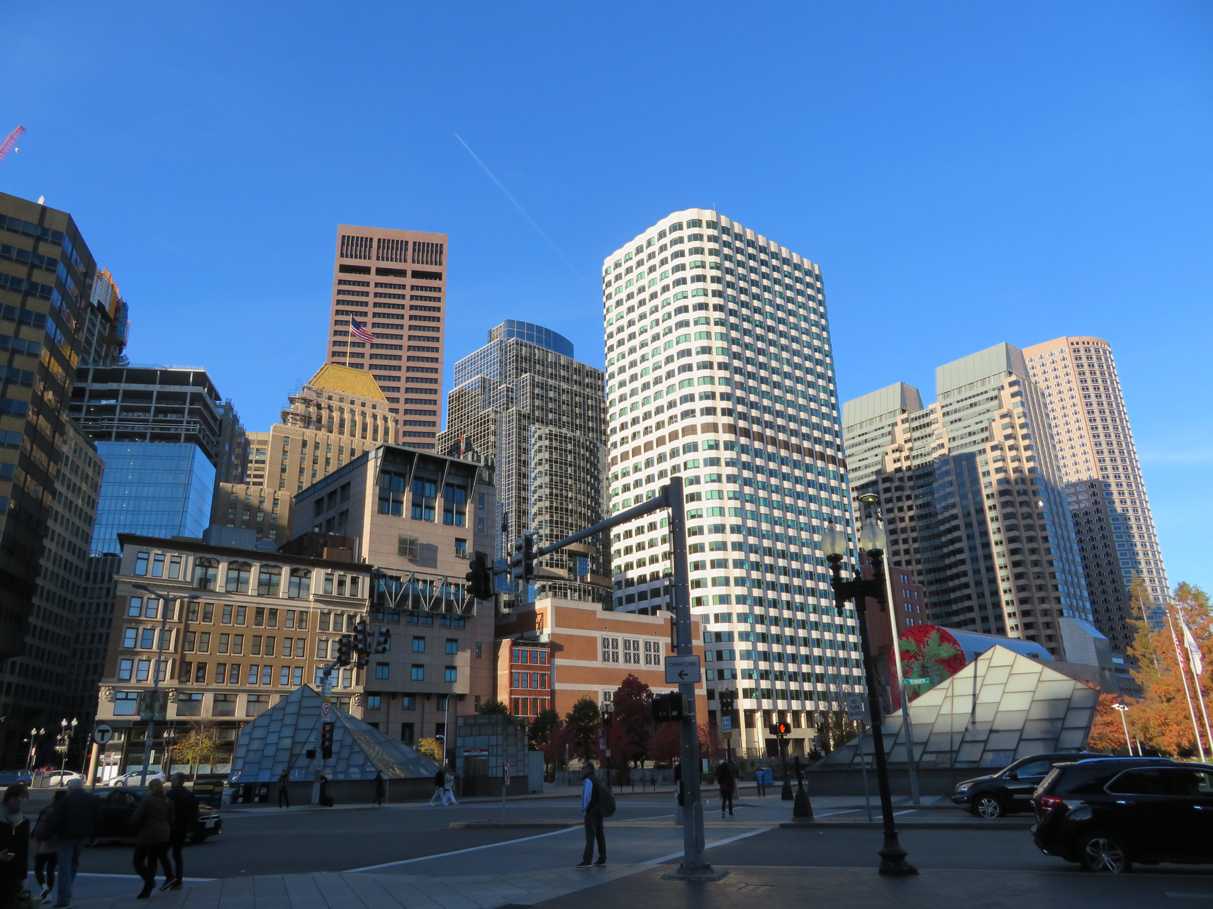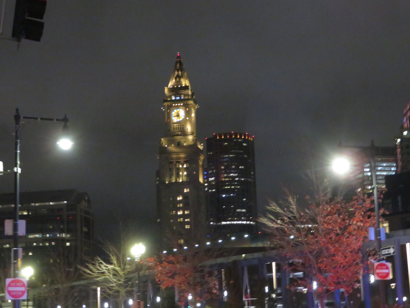 =================================================================== Boston Trip Nov 20, 2021 Left from Amtrak BWI Station at 0630, 28 deg. BRRR-cold. Took photo of New York skyline as the train went by a bridge.The train ride seemed to last forever. We brought our own lunches, flatbread prosciutto wraps. We arrived at 1430 in Boston at the Boston South station. We decided to walk to the Hotel Godfrey about 1.5 miles away. I used the small suitcase as a hiking pole but did not did not feel well during the walk. It was blustery and chilly. Boston near South Station