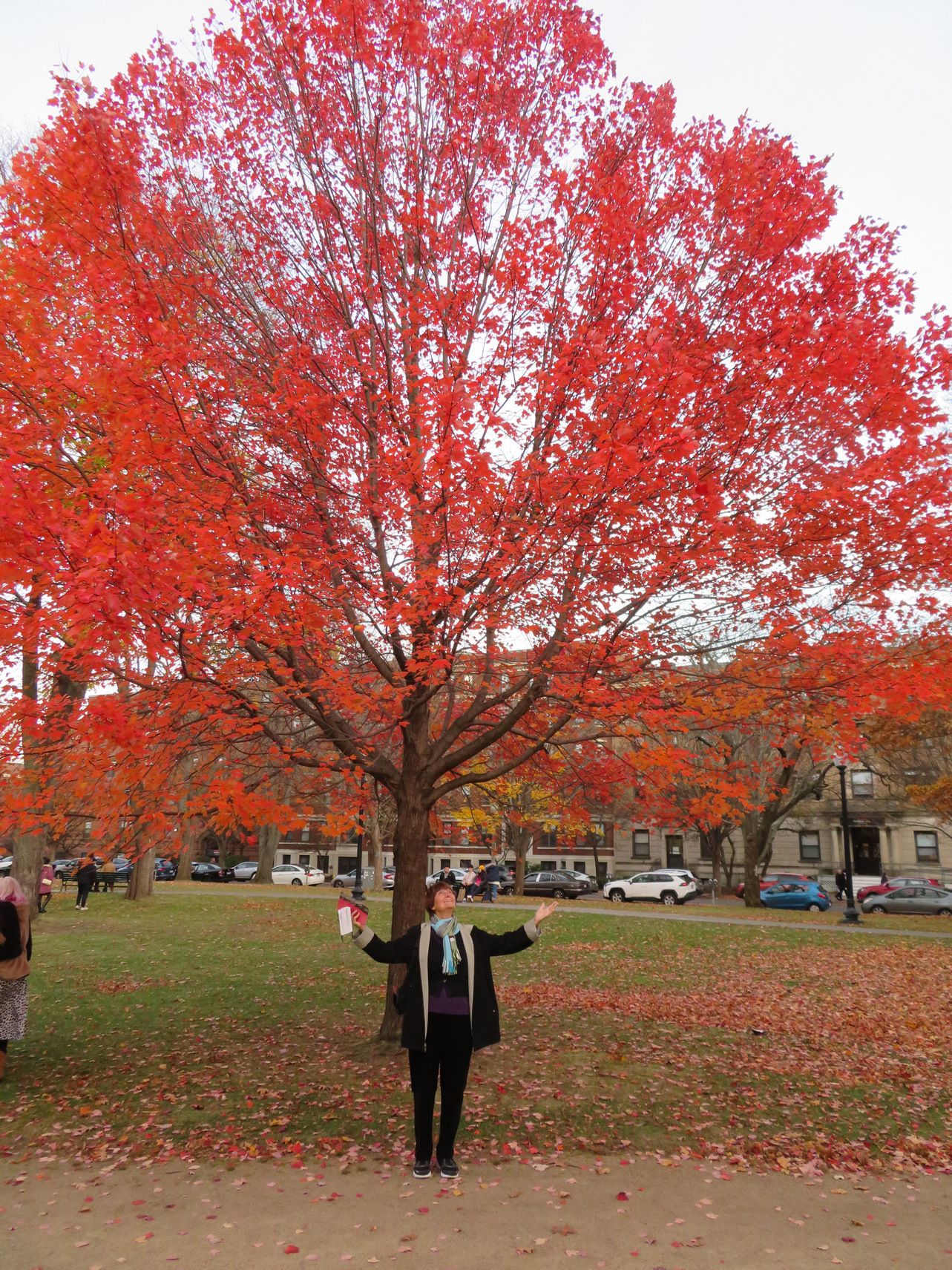 We then exited the museum and spent some time in a small quadrangle ark facing the museum and there was this ideal tree with the beautiful red colored leaves in a perfect shape and I took photos of Rosemary under the tree. We sat on the bench and watched some kids gathering fallen leaves to make up piles so they could dive into them. This pretty much a concluded our afternoon at the Gardner Museum.
