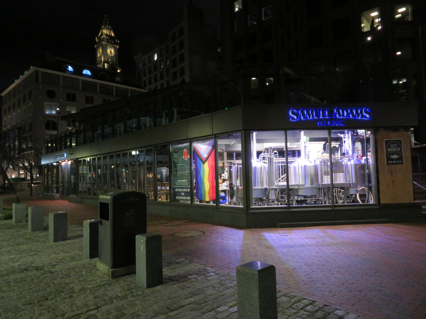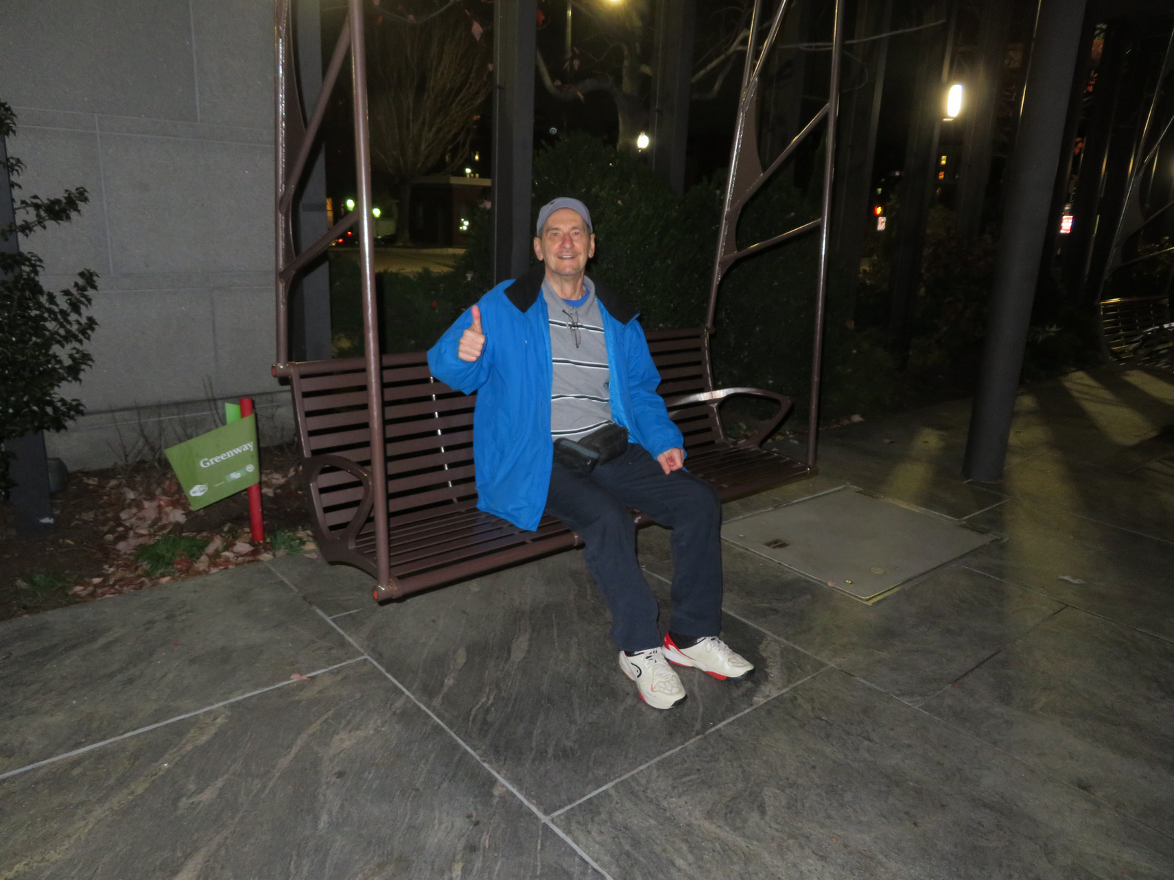 After dinner we then walked up and down the single lane street that had many restaurants, mainly oyster bars, but also some Italian. We took plenty of photos we then walked back retracing our steps to the hotel. We stopped by this park that bordered a freeway going through the downtown Boston. Along a long walkway there were these a very large swings with benches so you could sit on the bench and have it swaying back and forth so we took some up photos of the swings and us there. We also went by the Samuel Adams Brewery. It turned out to be a very good evening even though I felt very tired because I ended up with 7800 steps for the day which was the most amount I would have walked since my operation.