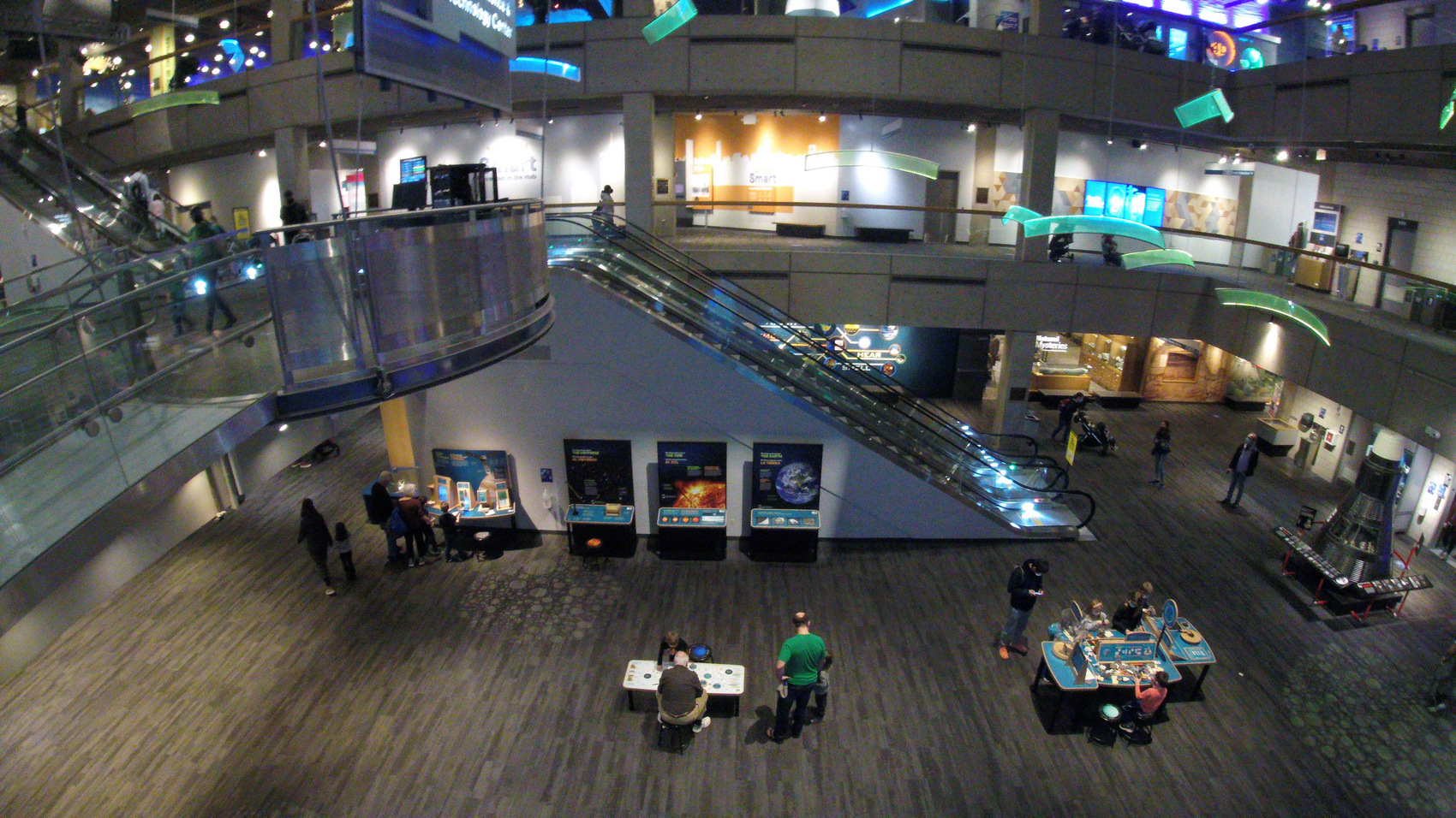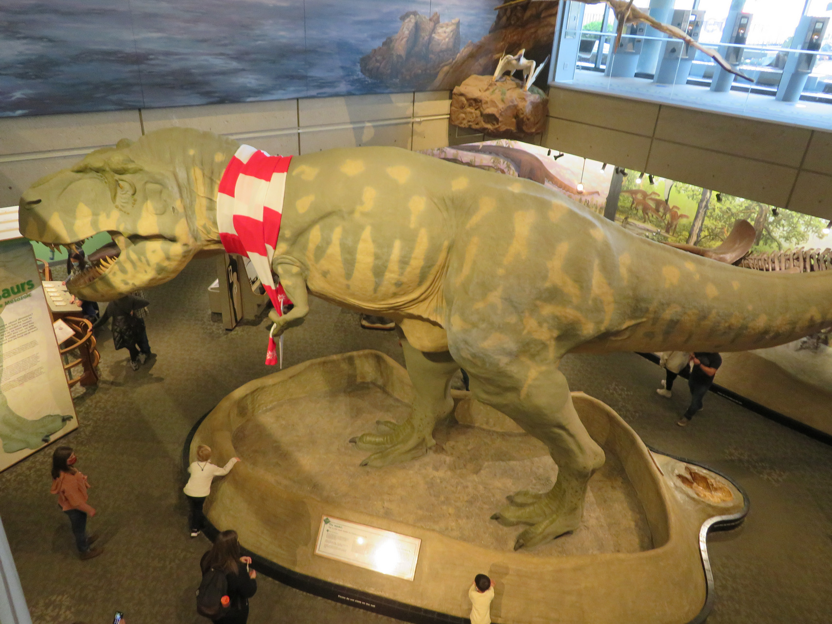 ==================================================================== Science Museum Boston Nov 22, 2021 On Monday, final day of Boston trip we visited the science museum and attended the Planetarium display that presented advances in the search for other planets in the Milky Way Galaxy. We again had breakfast of coffee Belvita cookies that we had brought from Maryland. We checked out of the Hotel and left our baggage there. We then got an Uber ride to the Science Museum. It was cloudy with light rain and mild. They design of the museum was very open and it had a lot of interactive exhibits. So this was very conducive to families in attendance with young children so they could be occupied and be entertained with a lot of interactive exhibits. At 1130 we went into the planetarium and sat through a very impressive 30 minute show about the search for alien life/ planets in our galaxy and it was very well done with the excellent music. For lunch we went to the café restaurant that overlooked the Charles river and the I got a tomato soup and some sweet potato fries which were excellent. We then went through various exhibits in the rest of the science museum. There were mockups of Mercury and Apollo capsules. There was an impressive full scale display of dinosaurs. There were also interesting displays of scale models of various history- changing ships. They had many sound/ light/ infrared interactive displays were you could stand in front of the screen and make images develop. There also was a Christmas display of train collections that had just been setup for the season involving all sorts of trains with detailed scenery and tunnels.
